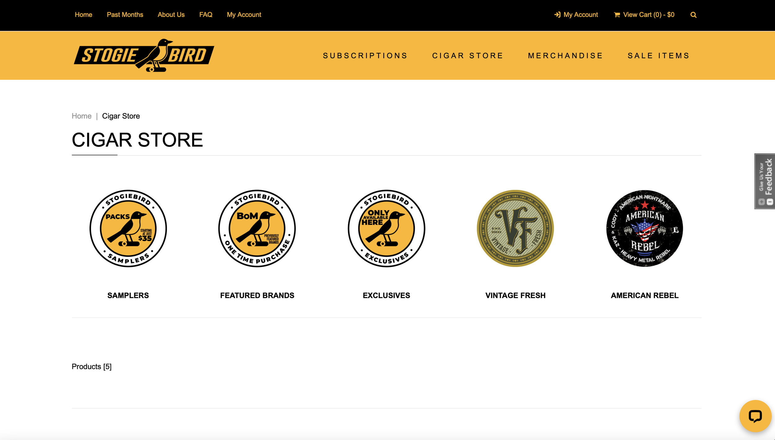 I designed the Stogiebird online store with a large eye-catching image and regularly updated the image highlighting the current monthly selections. Products in both subscription format as well as one-time purchase options are made easily available through this e-commerce site. Impulse add-on items are offered during the checkout funnel process to increase the total sale. A simple streamlined checkout process with estimated shipping cost, coupon option, and account management expedites ordering and reordering previous purchases with an integrated “address book” and “wallet” which maximized customer retention. Integrated social buttons make it easy for customers to share products, and a feedback area allows for product ratings and reviews which are accessible from search engines. An added securely encrypted online chat feature allows employees to help customers in real time with questions, issues, or offer them suggestions or discounts based on which pages they visit or what products they are viewing.